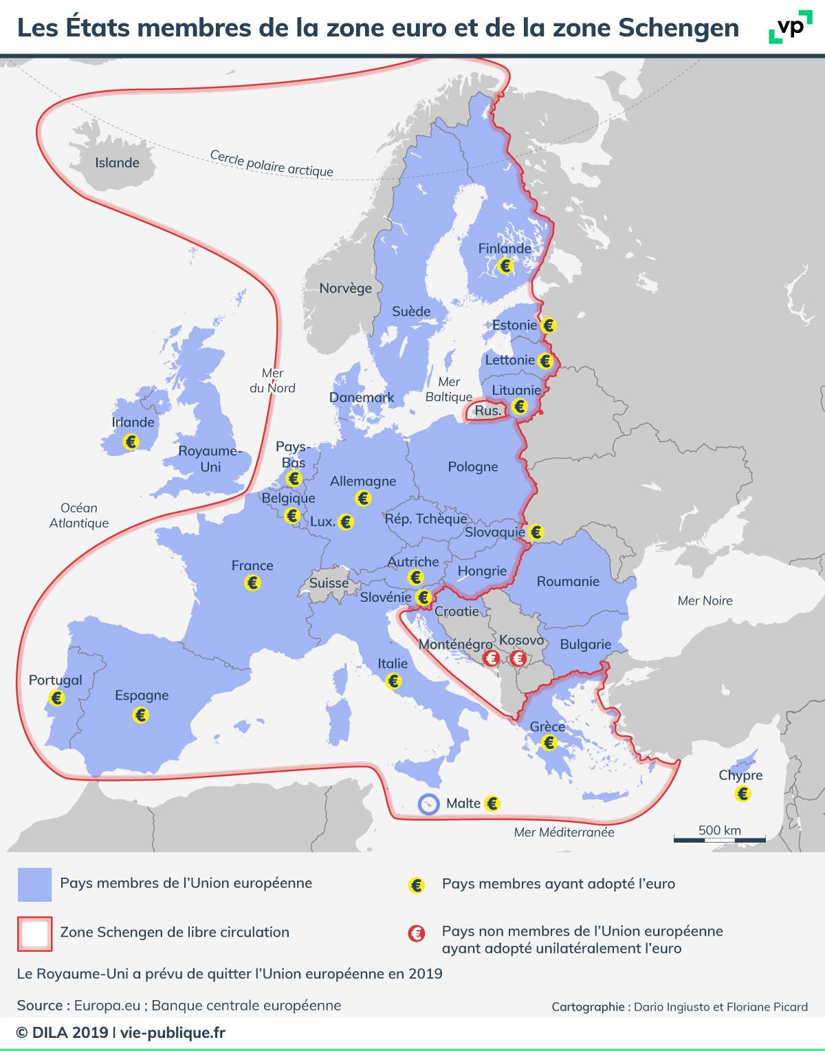 signification : espace de libre circulation des personnes entre les pays qui ont signé les accords Schengen. Cette libre circulation comprend le droit de franchir librement les frontières entre les pays de l’Union européenne qui ont signé ces accords ; droit de circuler librement à l’intérieur de ces mêmes pays. Les pays qui ont signé les accords Schengen sont les suivants : 22 des 27 pays de l’Union européenne (sauf la Bulgarie, la Roumanie, Chypre et la Croatie) ; quatre pays qui ne font pas partie de l’Union européenne mais qui ont tout de même signé les accords Schengen : Norvège, Islande, Suisse et Liechtenstein.