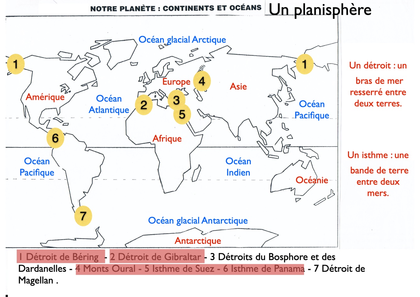 isthme signification : étroite bande de terre entre deux mers (exemple : isthme de Langlade à Miquelon). champ notionnel : détroit. pour aller plus loin : Carte des isthmes et des détroits du monde ; Exercices de repérage.