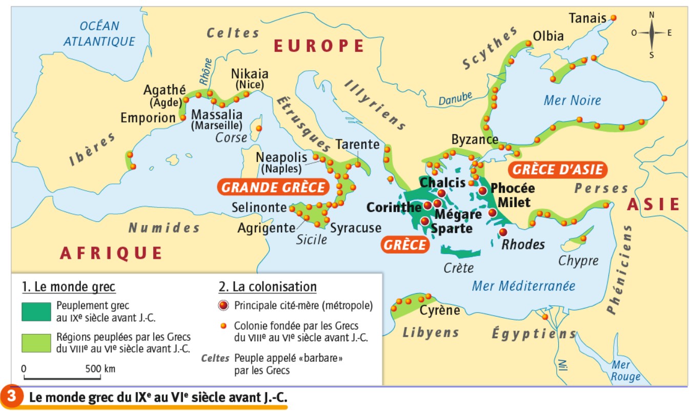 pour aller plus loin : Carte des métropoles et colonies grecques ; Marseille, fondation d’une colonie grecque.