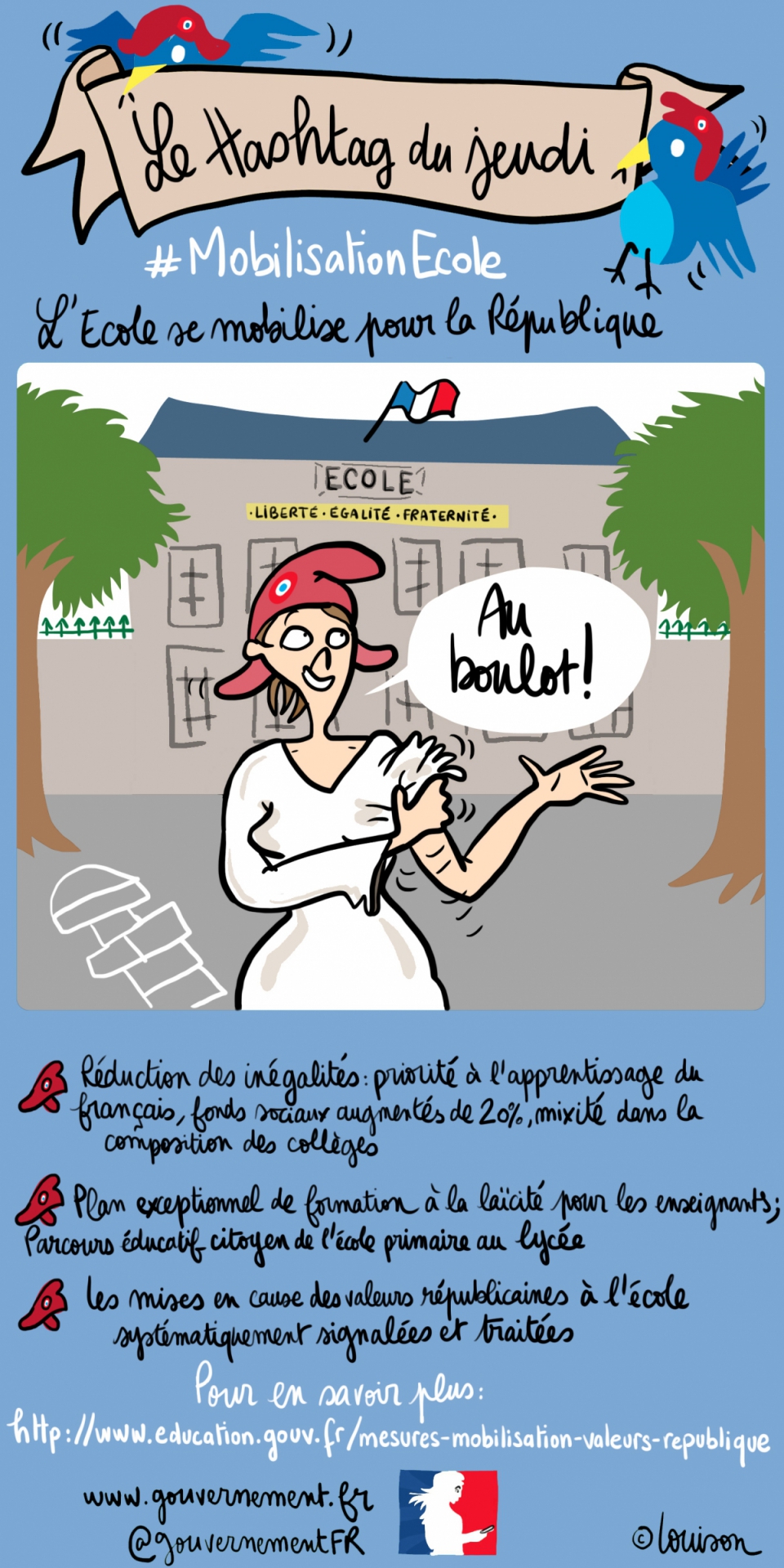 Vous trouverez ci-dessous, quelques exemples d’affiches pour réaliser le Hashtag de Voltaire. L’avantage de ces affiches est leur composition, facile à reproduire : en haut le titre, le hashtag et le slogan ; au centre, la situation initiale à étudier ; en bas, les solutions proposées.