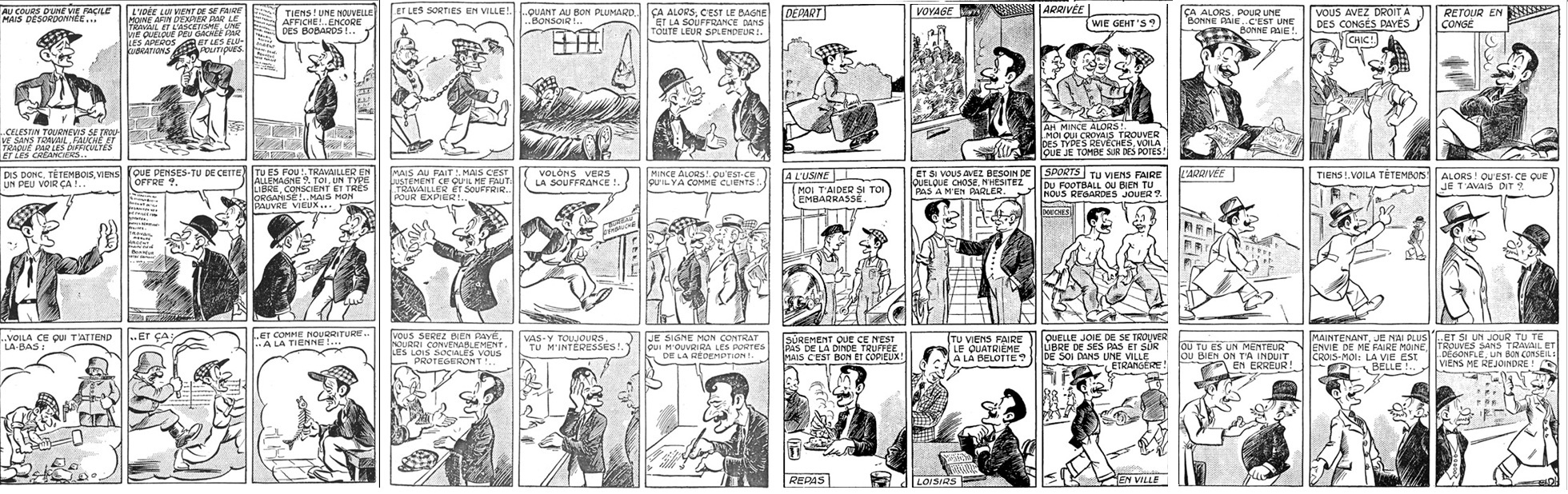 signification : une loi du régime de Vichy instaure, à partir du 16 février 1943, le Service du Travail Obligatoire (ou STO). Suite à la défaite française face à l’Allemagne, des volontaires français partent travailler dans les fermes et les usines allemandes pour compenser la baisse de la main-d’œuvre disponible. En effet, beaucoup d’allemands étant partis à la guerre, ils ne peuvent travailler dans les fermes ou les usines. Malgré de nombreux refus, on compte environ 650 000 volontaires (ils ne l’étaient pas tous…). Beaucoup d’affiches de propagande (exemple :affiche du STO de 1943) ou de bandes dessinées (exemple :Les aventures de Célestin Tournevis) incitent les français à partir travailler en Allemagne.