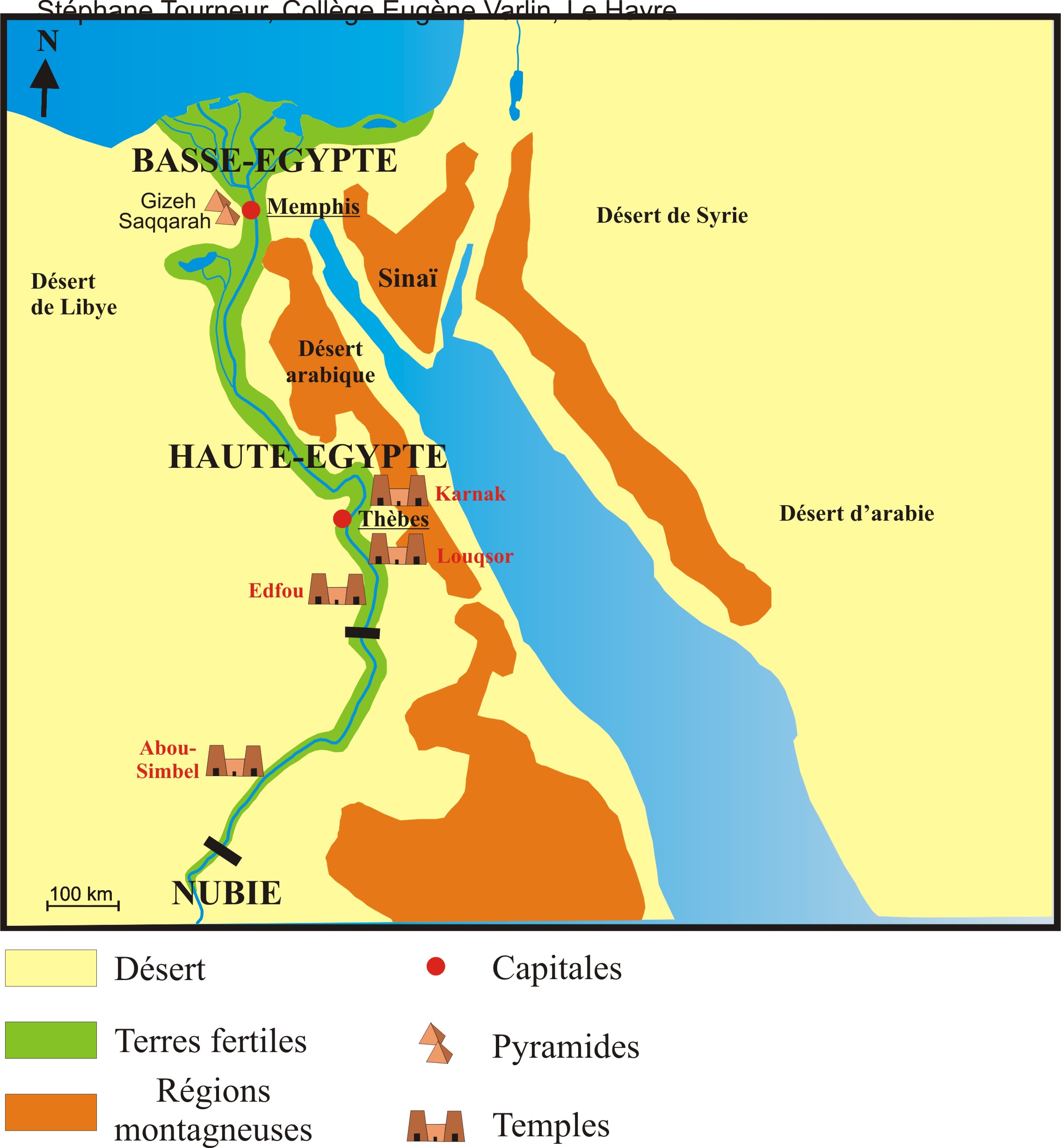 signification : dans l’antiquité égyptienne, le territoire dirigé par pharaon est l’Egypte antique composée de deux régions : la Haute et de la Basse Egypte. Traversée par le fleuve Nil, c’est une terre au climat aride.