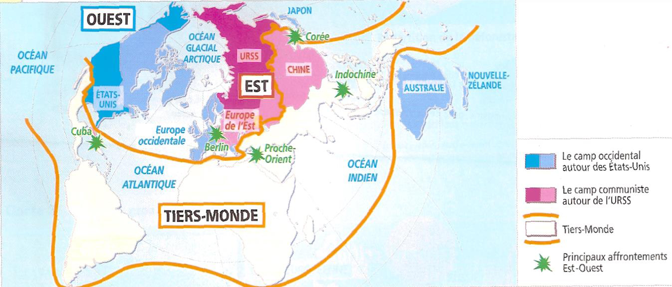 signification : expression inventée en 1952 par le géographe Alfred Sauvy. Cette expression permet de désigner l’ensemble des pays qui ne font partie d’aucun des deux blocs de la Guerre froide. Les pays du Tiers-Monde sont surtout d’anciennes colonies. Ces pays se trouvaient en Afrique, en Asie, en Océanie et en Amérique du Sud. On les appelait aussi les « pays non-alignés » ou pratiquant le « non-alignement » puisqu’ils refusaient de suivre la doctrine de l’un ou l’autre des blocs. La Guerre froide étant terminée, cette expression n’est plus intéressante même si elle continue d’être utilisée pour désigner les pays les plus pauvres. Les pays qui faisaient partie du Tiers-Monde ont donné naissance à deux catégories de pays : les Pays les Moins Avancés (PMA) et les pays en développement.