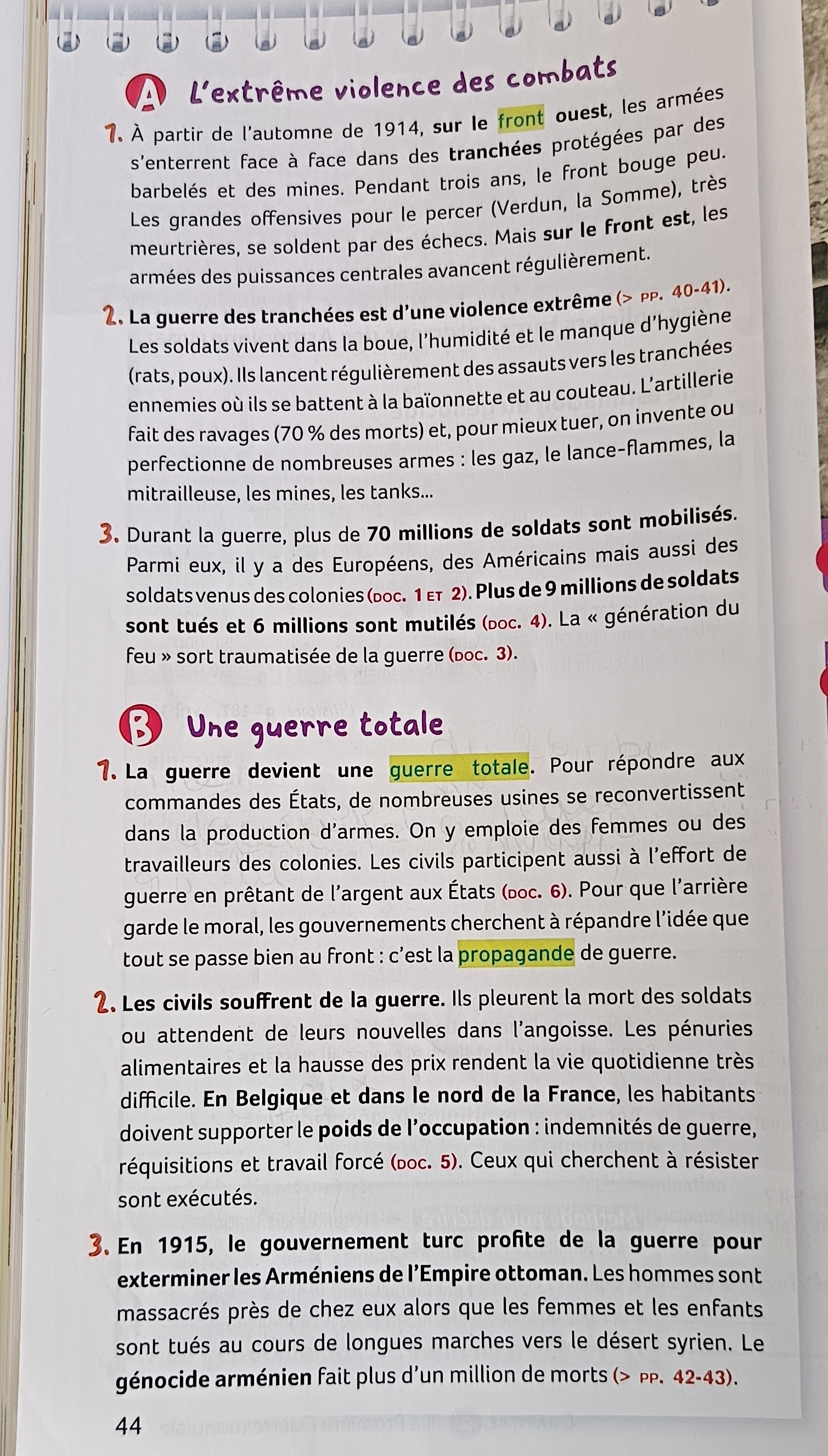 04/09 : CIVILS ET MILITAIRES DURANT LA Iᵉ GUERRE MONDIALE : Cours – Corrections – Bilan.